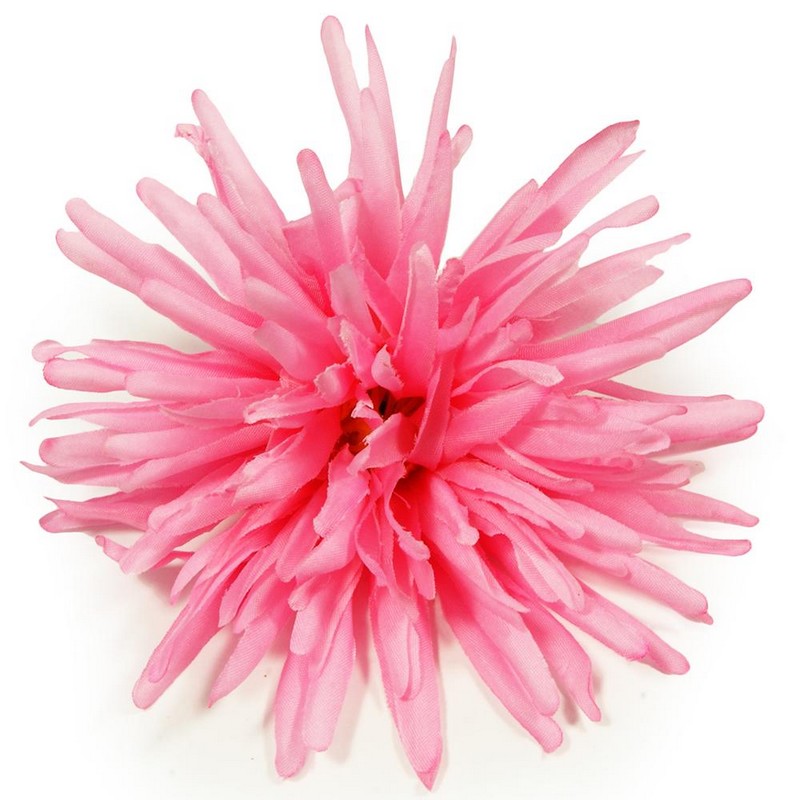 * Umělá chryzantéma s třásňovitými okvětními lístky v růžové barvě.