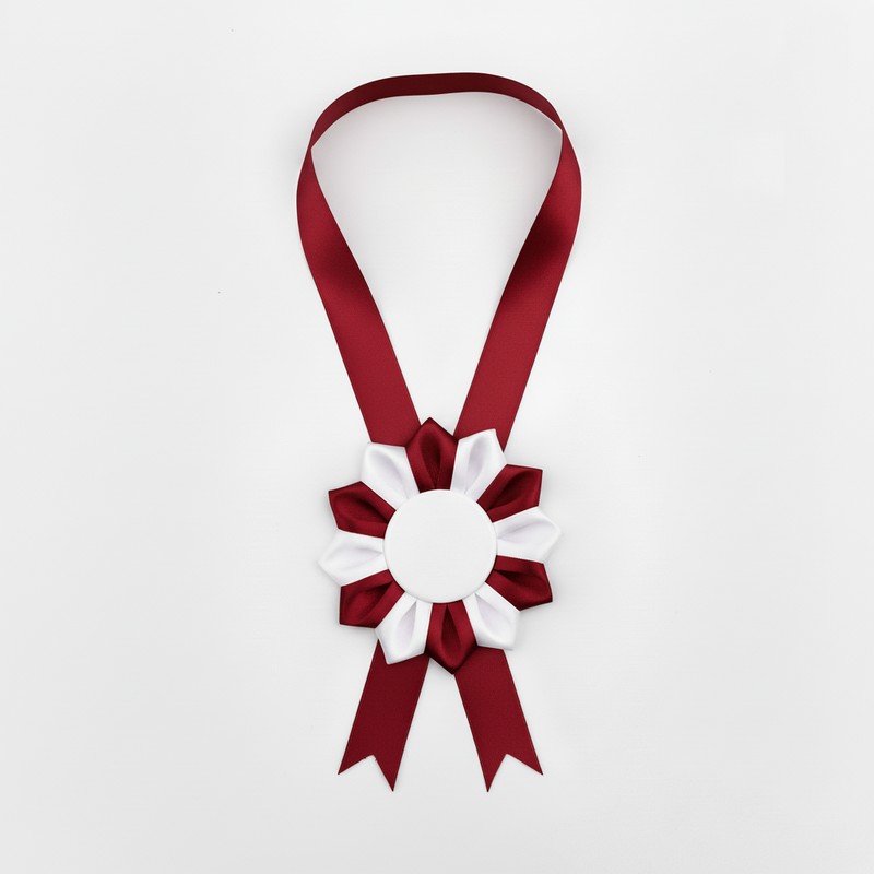 Tahle ručně vyráběná kokarda na krk v elegantní bílo-bordó kombinaci promění každý okamžik ve výjimečný. Ať už oceňuješ výkon, snahu nebo chceš někomu udělat radost – tahle kokarda tomu dodá ten správný význam.
