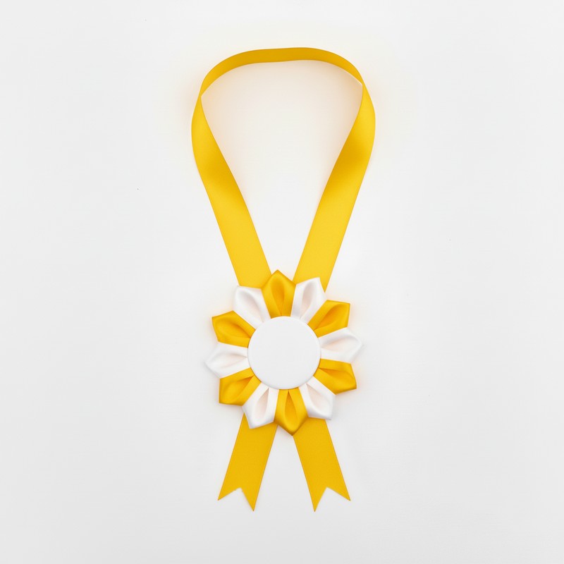 Tahle ručně vyráběná kokarda na krk v elegantní bílo-žluté kombinaci promění každý okamžik ve výjimečný. Ať už oceňuješ výkon, snahu nebo chceš někomu udělat radost – tahle kokarda tomu dodá ten správný význam.