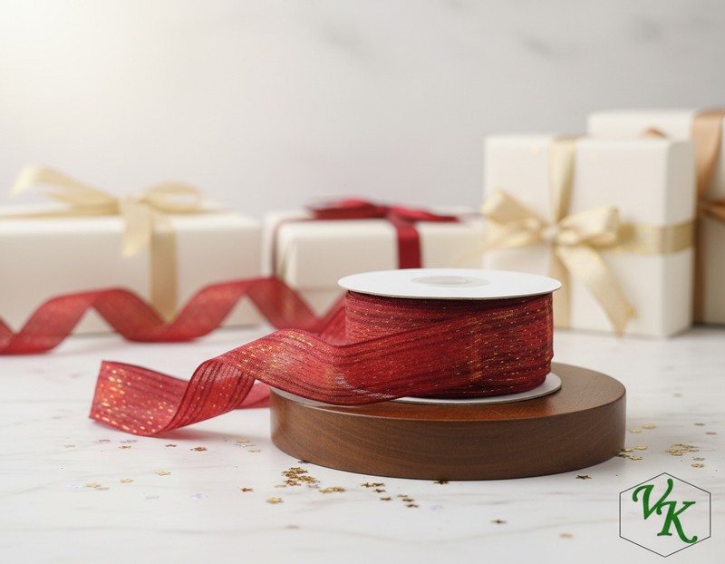 Kostková stuha s metaloplastem a drátem, 25mm, červená