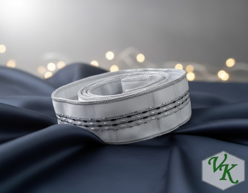 Kostková stuha s metaloplastem a drátem, 40 mm, stříbrná