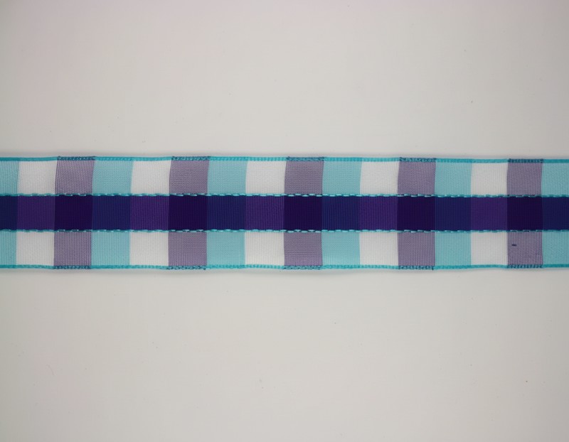 Kostková stuha se vzorem a drátem, 40mm, modrá