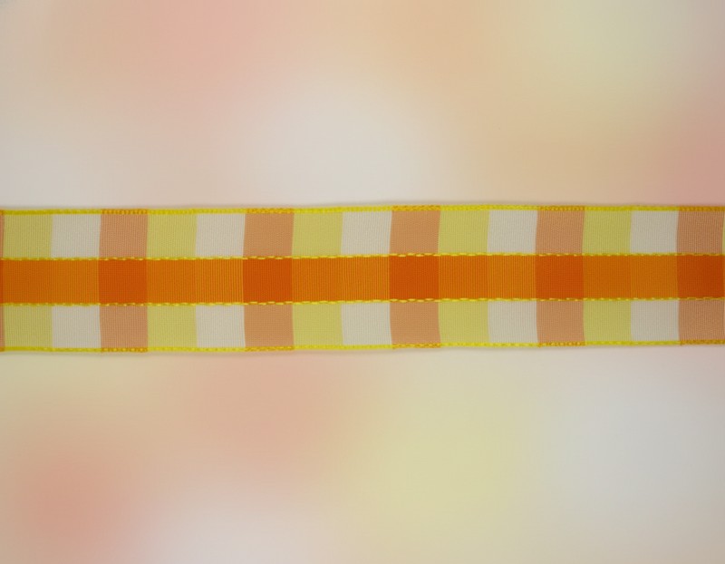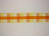 Kostková stuha se vzorem a drátem, 40mm, žluto-oranžová