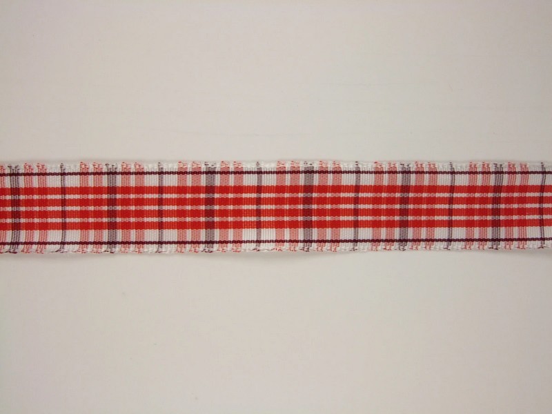 Plátnová stuha s monofilem,vzorem a drátem, 25mm, červená
