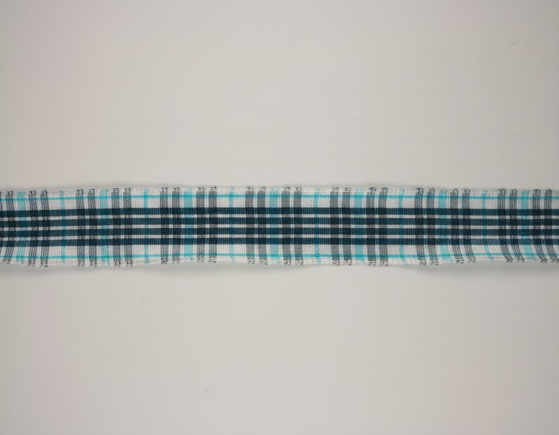 Plátnová stuha s monofilem,vzorem a drátem, 25mm, modrá