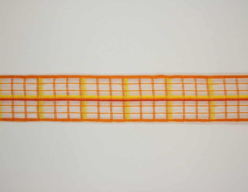 Plátnová stuha s monofilem,vzorem a drátem, 25mm, oranžová