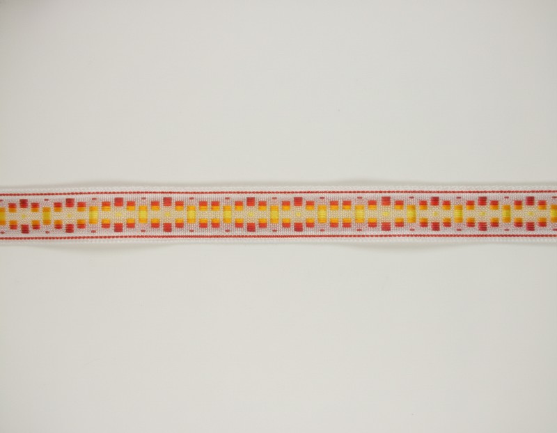 Plátnová stuha se vzorem a drátem, 15mm, 15 mm, červeno-oranžová