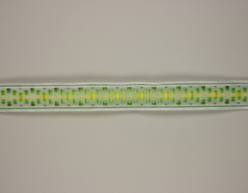 Plátnová stuha se vzorem a drátem, 15mm, 15 mm, zeleno-žlutá
