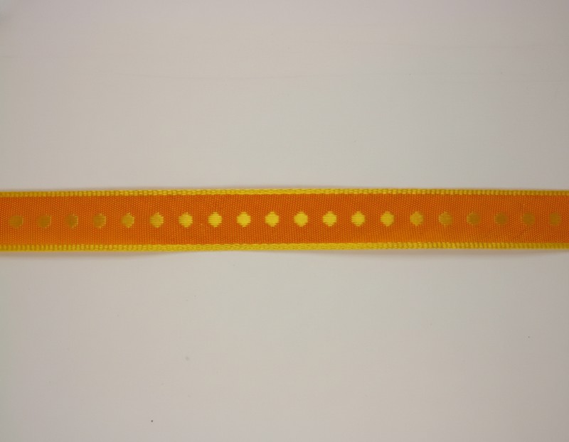 Plátnová stuha se vzorem a drátem, 15mm, oranžová