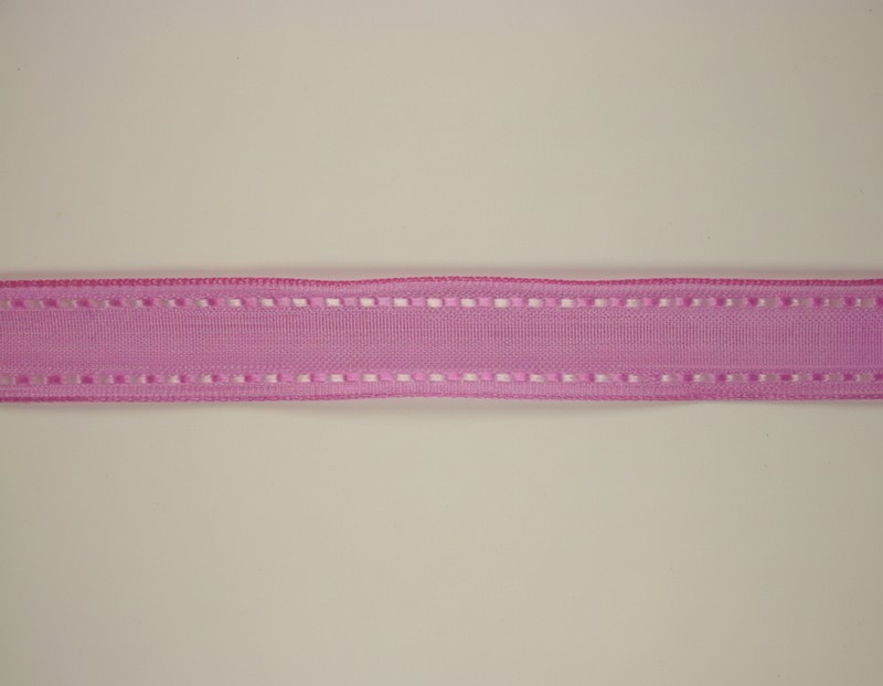 Plátnová stuha se vzorem a drátem, 25mm, růžová