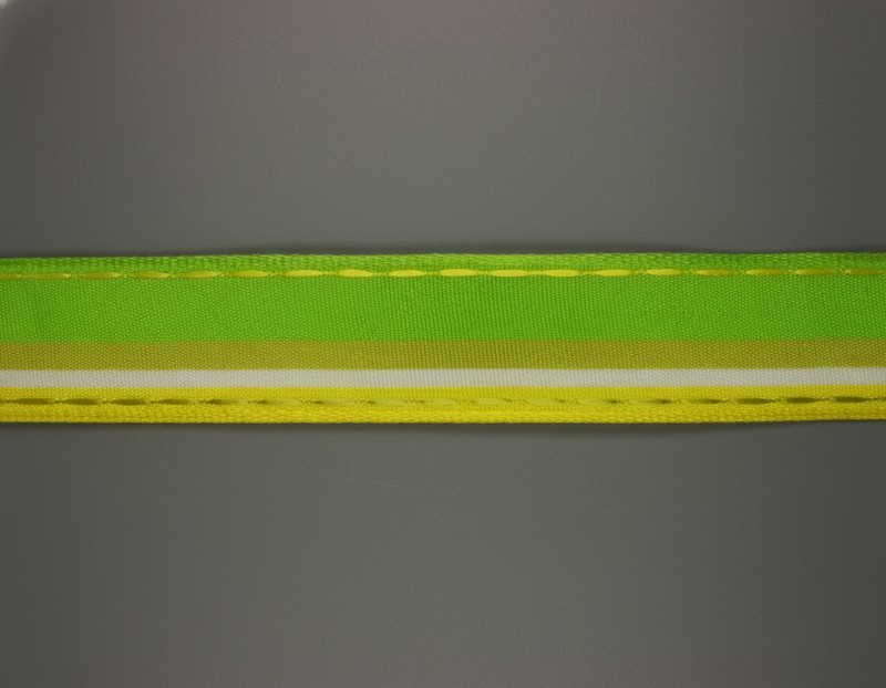 Plátnová stuha se vzorem, monofilem a drátem, 25mm, žluto-zelená