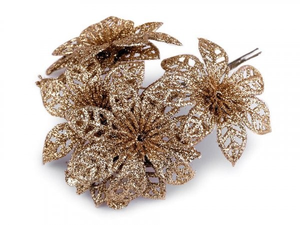 * Rozkvetlé vánoční hvězdy nesmí chybět v žádném vánočním aranžmá. Jejich povrch se třpytivými glitry dodá vašemu domovu nádech elegance a luxusu. Květy vánoční hvězdy jsou připevněny k ohebnému drátku, kterým lze lehce manipulovat.