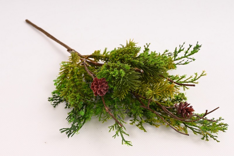 * Kombinace různých druhů jehličňanů: Větvička je navržena tak, aby věrně napodobovala různé druhy jehličnatých stromů, což jí dodává autentický vzhled.